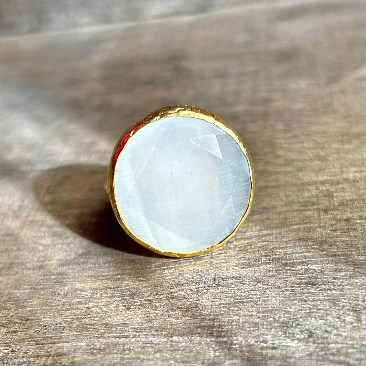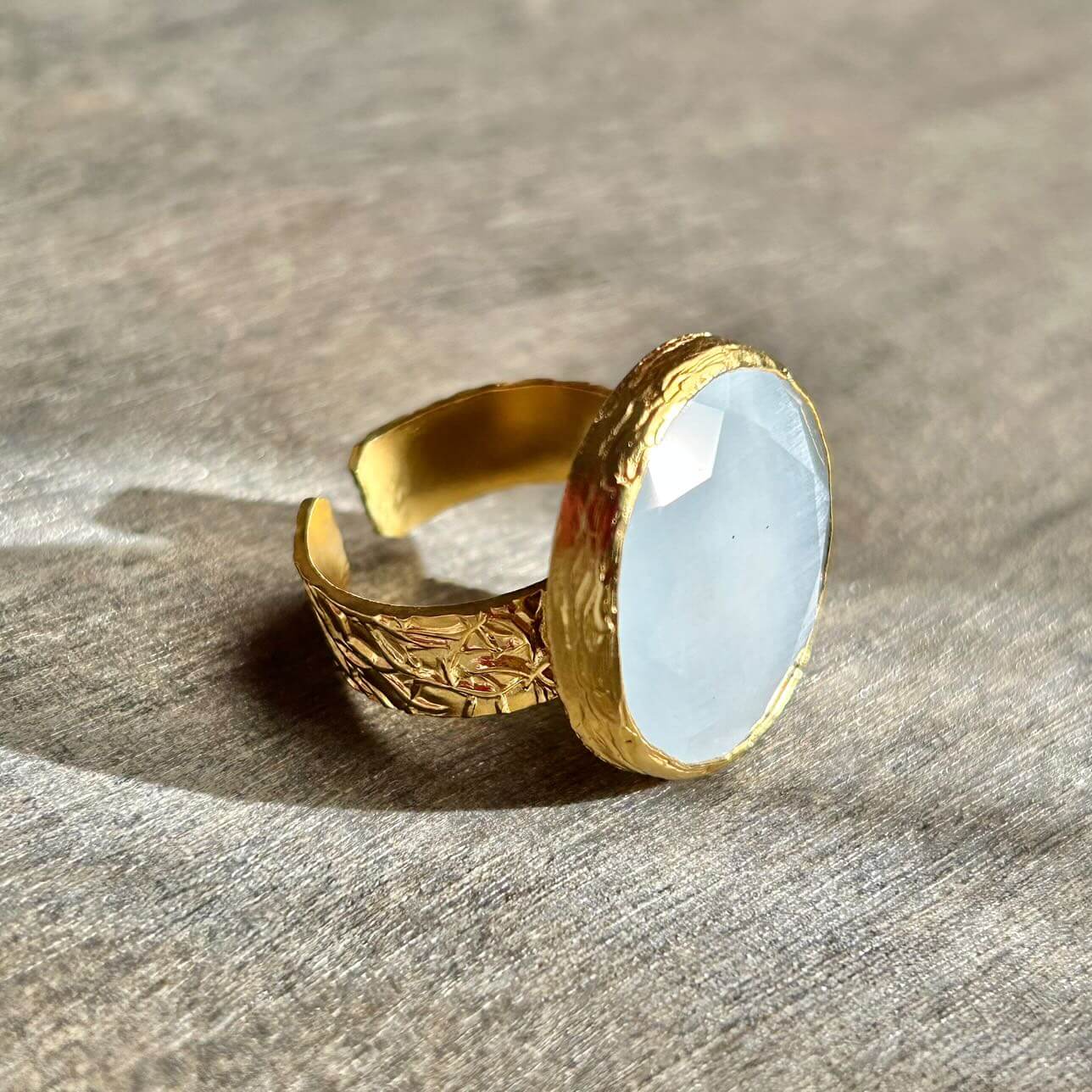 Anillo Gris en Ojo de Gato y Peltre con Baño de Oro de 18k Ajustable.