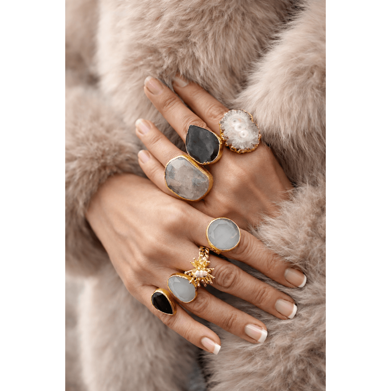 Anillo Gris en Ojo de Gato y Peltre con Baño de Oro de 18k