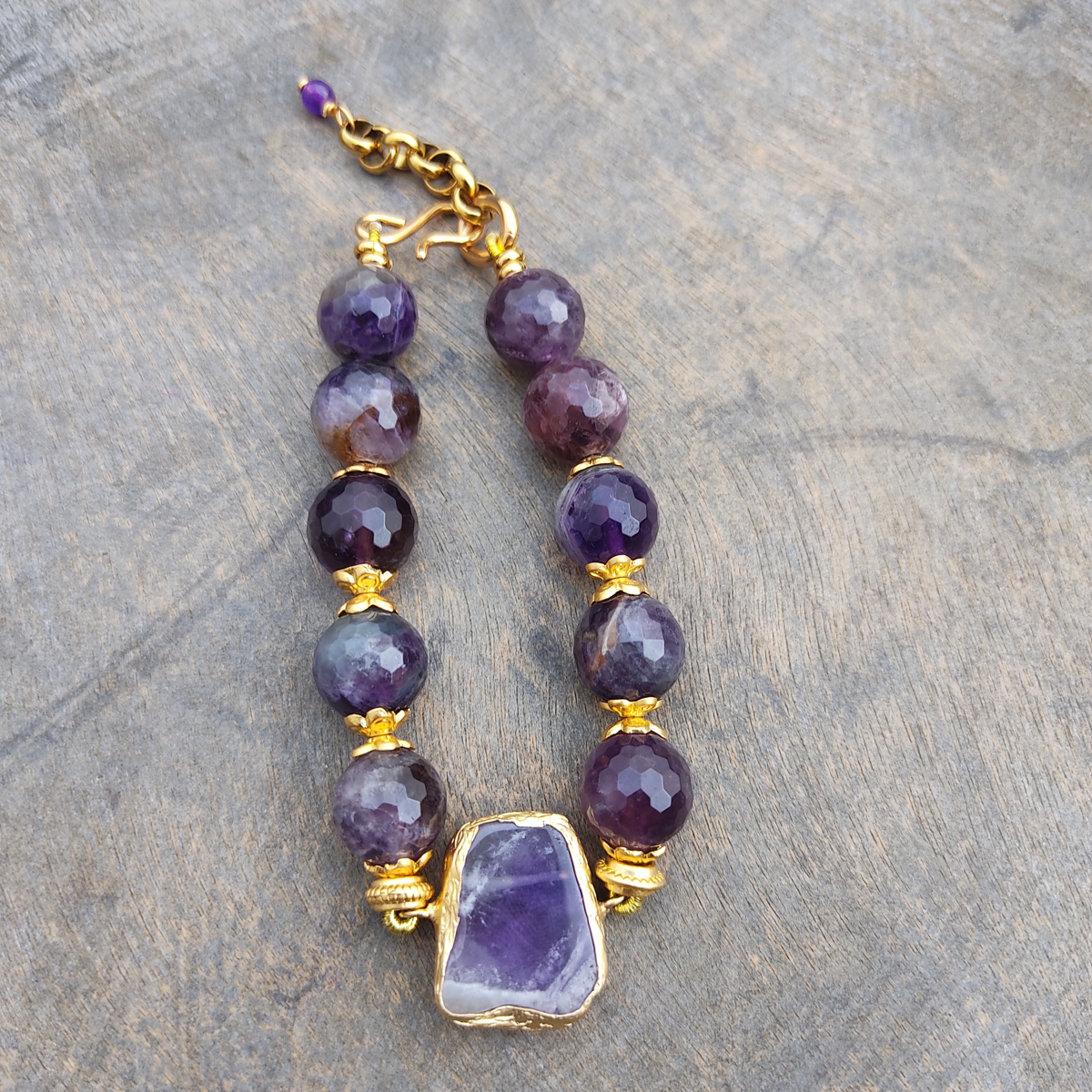 Pulseira de ametista e estanho com banho de ouro de 18 quilates