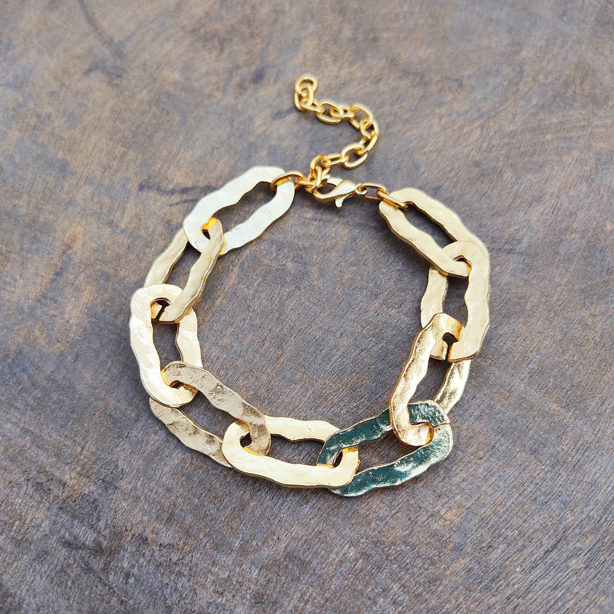 Pulseira de corrente em Peltre com Banho de Ouro de 18 quilates.